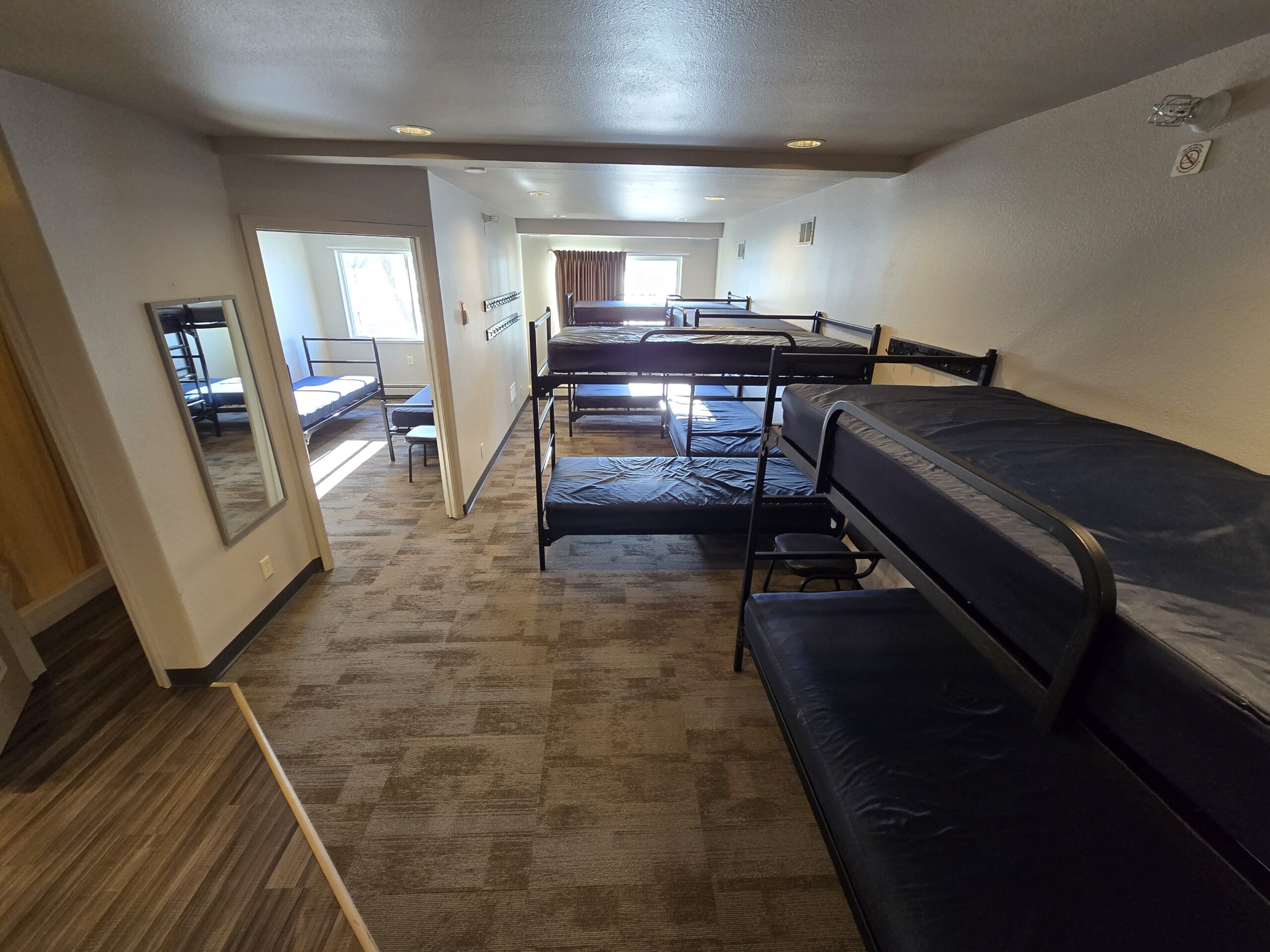 Format: Inner Room, 2 Single Beds; Outer Room, 4-5 Sets of Bunks, AC, 2 Showers & Vanities